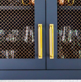 Linking in nicely with the metallic touches that are such hot news right now, mesh-fronted units are on the rise. They offer a pleasing compromise between glass and solid-fronted units, disguising messy contents without appearing heavy or overbearing.